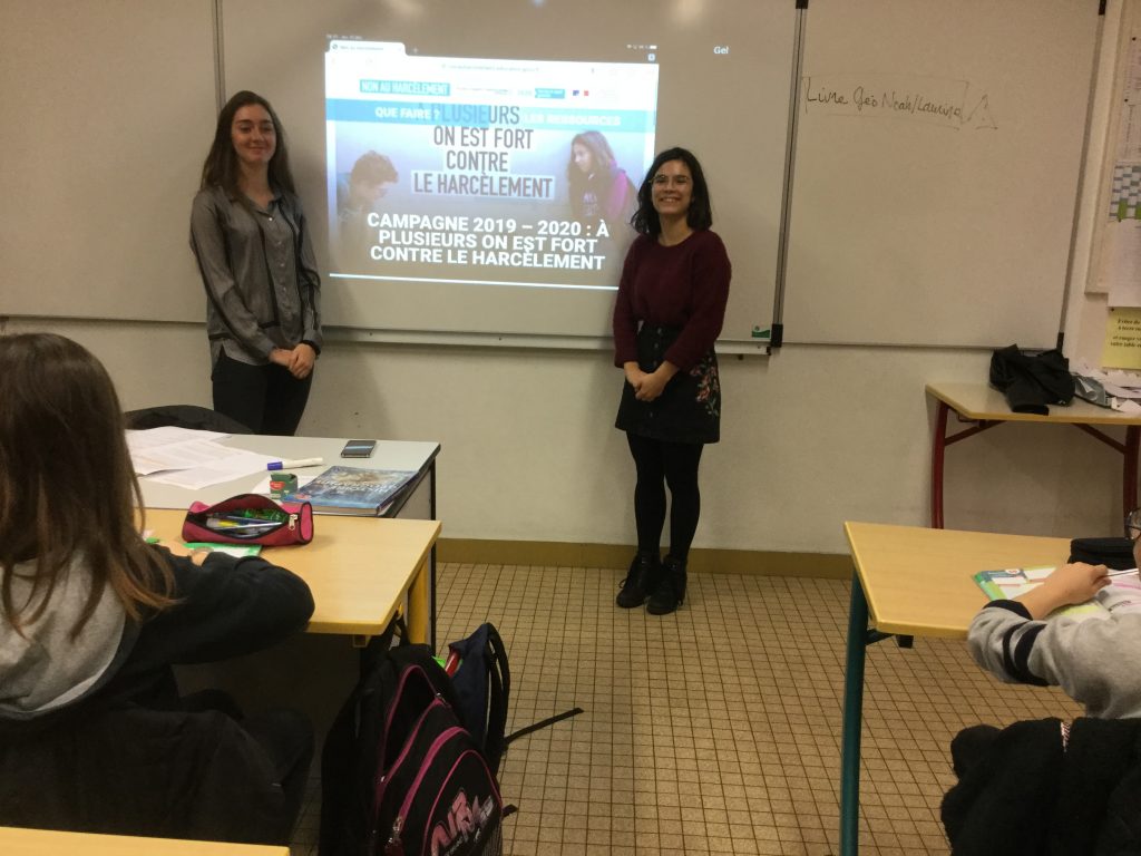Depuis plusieurs mois, Lisa, Clémence, Julia ,Juliette, Océane, Anaïs, Emma, Clément et Armand, tous élèves de terminale préparent une intervention sur le harcèlement auprès des classes de 6ème.